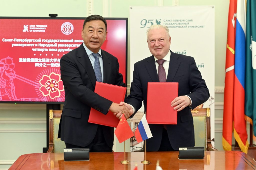 Сотрудничество СПбГЭУ с Народным университетом ведет отчет с 2002 года, когда прошел I Форум ведущих экономистов России и Китая. Форум с тех пор проводится каждые два года поочередно на площадках двух вузов. На сегодняшний день совместная работа длиной почти в четверть века охватывает научно-образовательное сотрудничество, совместные конференции и семинары, стажировки студентов и преподавателей.