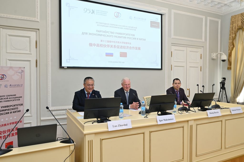 С 25 по 26 сентября в СПбГЭУ в рамках празднования 95-летия вуза при поддержке Министерства науки и высшего образования РФ прошло XIII ежегодное собрание Российско-китайской ассоциации экономических университетов (РКАЭУ). Собрание объединило более 60 представителей ведущих экономических вузов России и Китая.